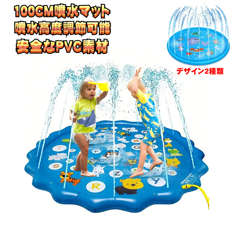 噴水マット 100CM 直径 噴水 プール ビーチ マット ビニール プール 噴水プール 夏の日 芝生遊び 庭 家庭用 親子芝生遊び 夏対策