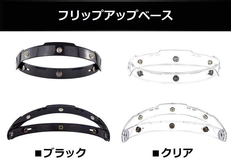バイク ヘルメット フリップアップ ベース ジェットヘルメット用 3点ボタン式 自在可動式 シールドベース【 ブラック or クリア 】