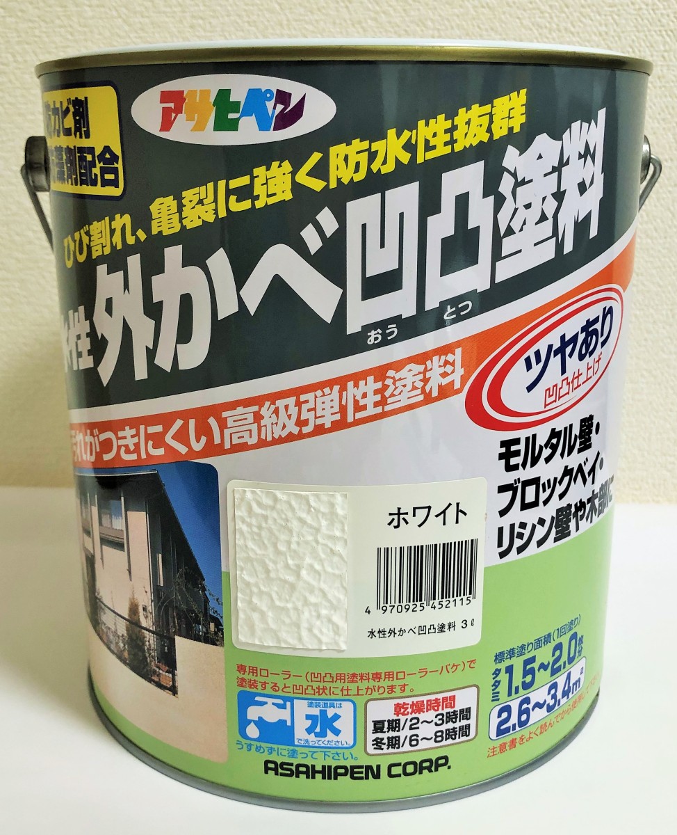 アサヒペン 水性外かべ凹凸塗料 3L ホワイト ツヤあり アウトレット品