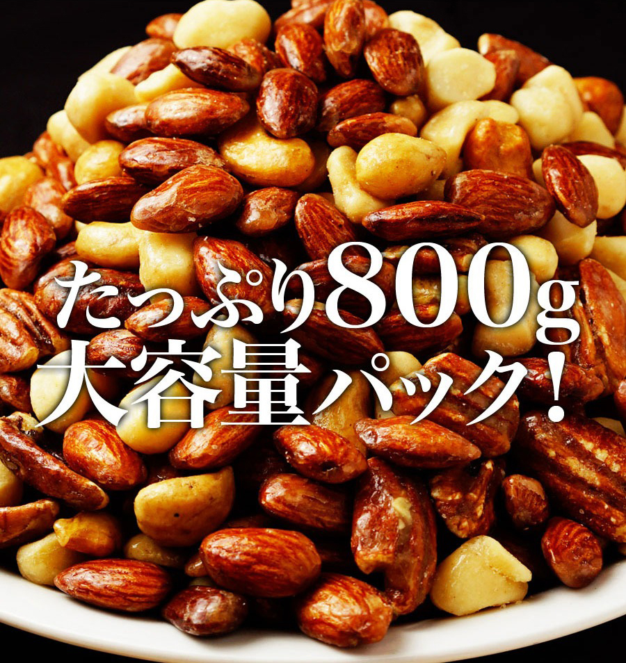 ■アーモンド・マカダミアナッツ・カシュ―ナッツ・ピーカンナッツの4つのナッツが合計ドカッと800g。