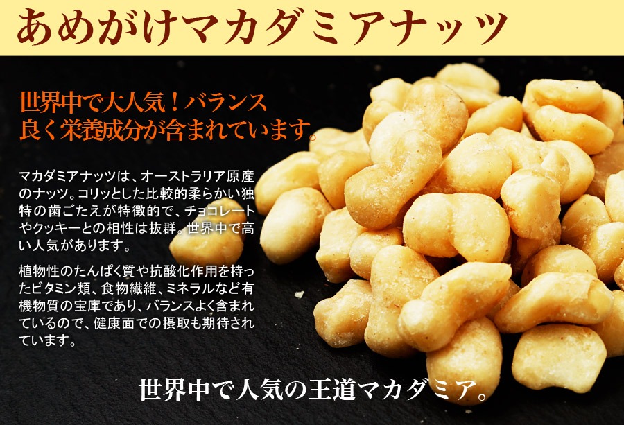 【マカダミアナッツ】マカダミアナッツ加工品(国内製造)、砂糖、水飴、植物油脂/乳化剤