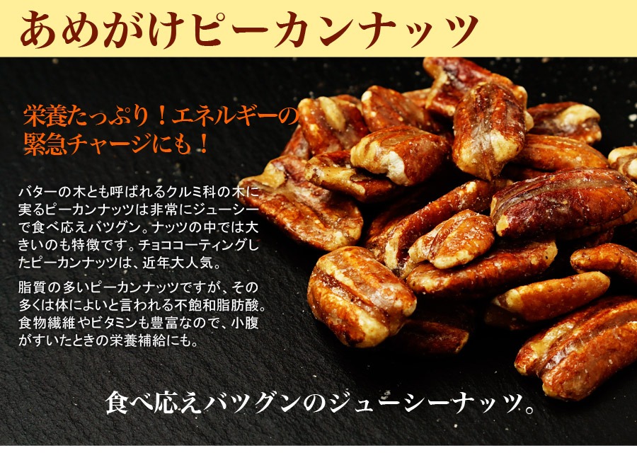 【ピーカンナッツ】ピーカンナッツ(アメリカ産)、砂糖、水飴、植物油脂/乳化剤