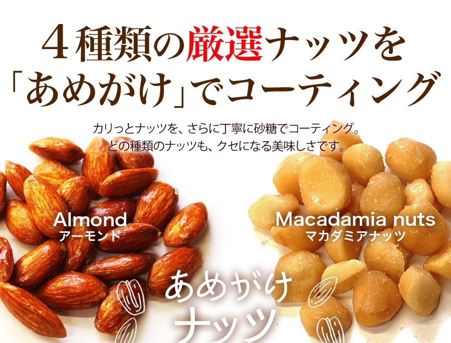 商品カテゴリー:お菓子 おやつ おつまみ スイーツ ミックスナッツ あめがけ コーティング