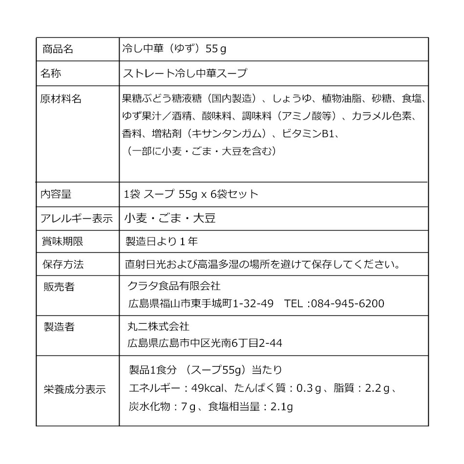 メール便 送料無料 冷麺 スープ 小袋 個包装 ゆず 柚子 冷やし中華 スープ 55gx6袋セット