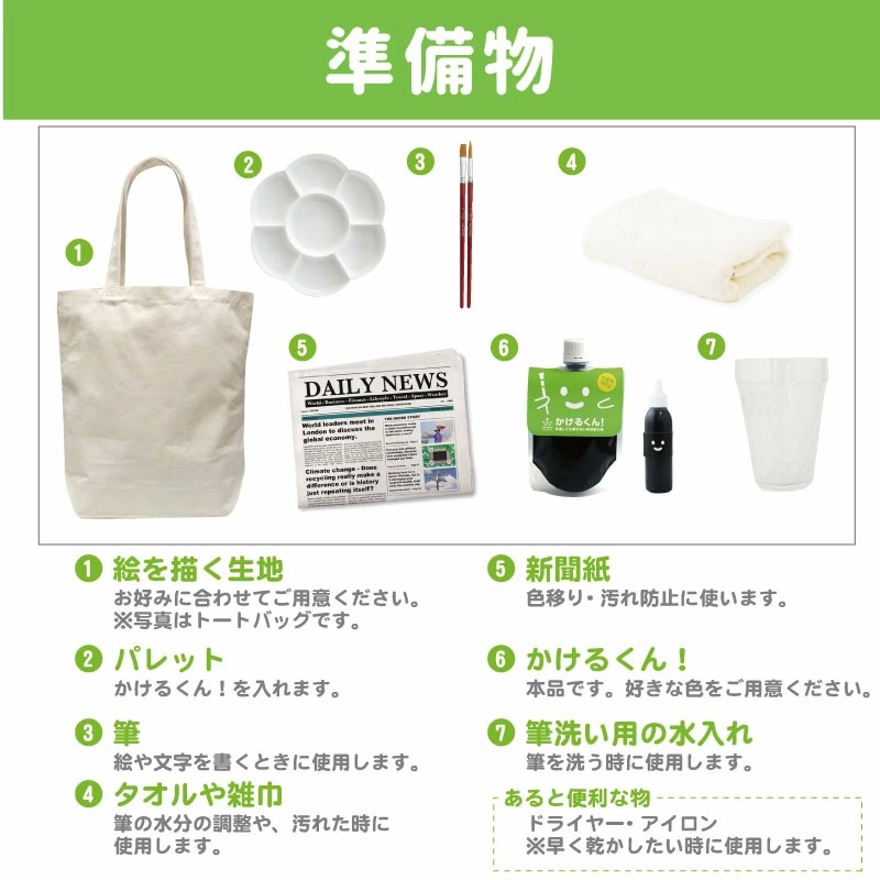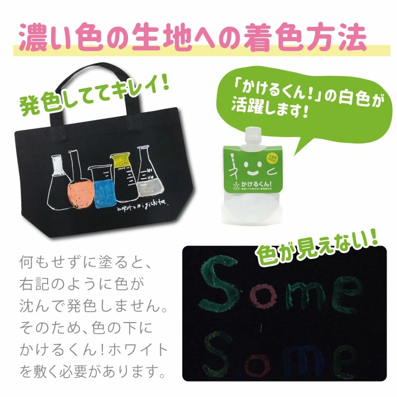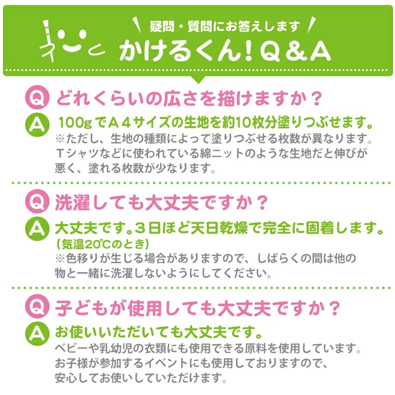「布用絵の具プチかけるくん!」は、布に自由にお絵かきできる画材「かけるくん!」の少量(20g)セット版です。