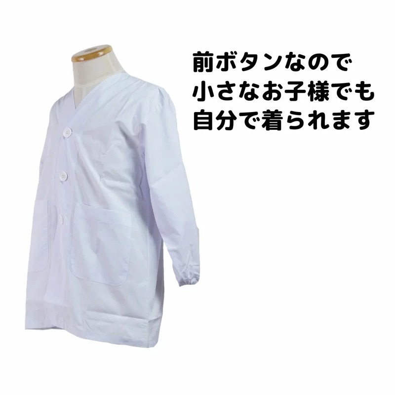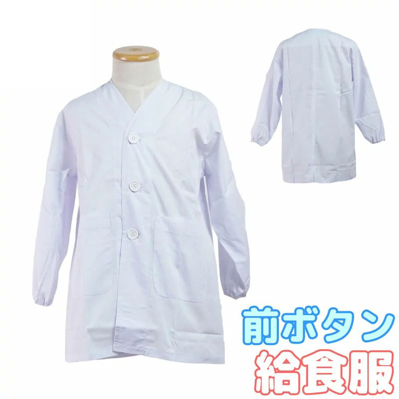 メール便 送料無料 子供用学校給食着 前ボタン 白 無地