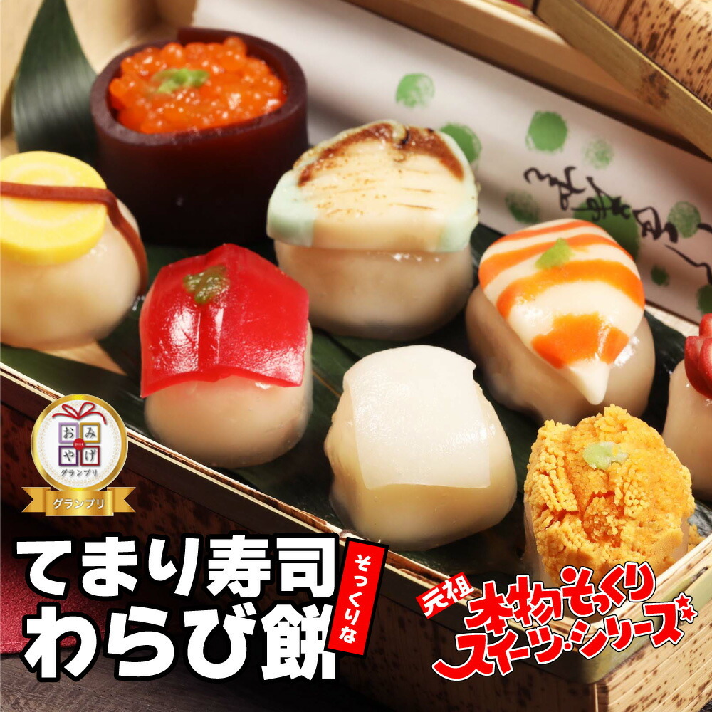 一見、マグロやタコのてまり寿司の詰め合わせに見えますが、実は8種類の寿司ネタすべてが、自家製の白あん、羊羹、レモン餡など和菓子の素材で作られたもの。