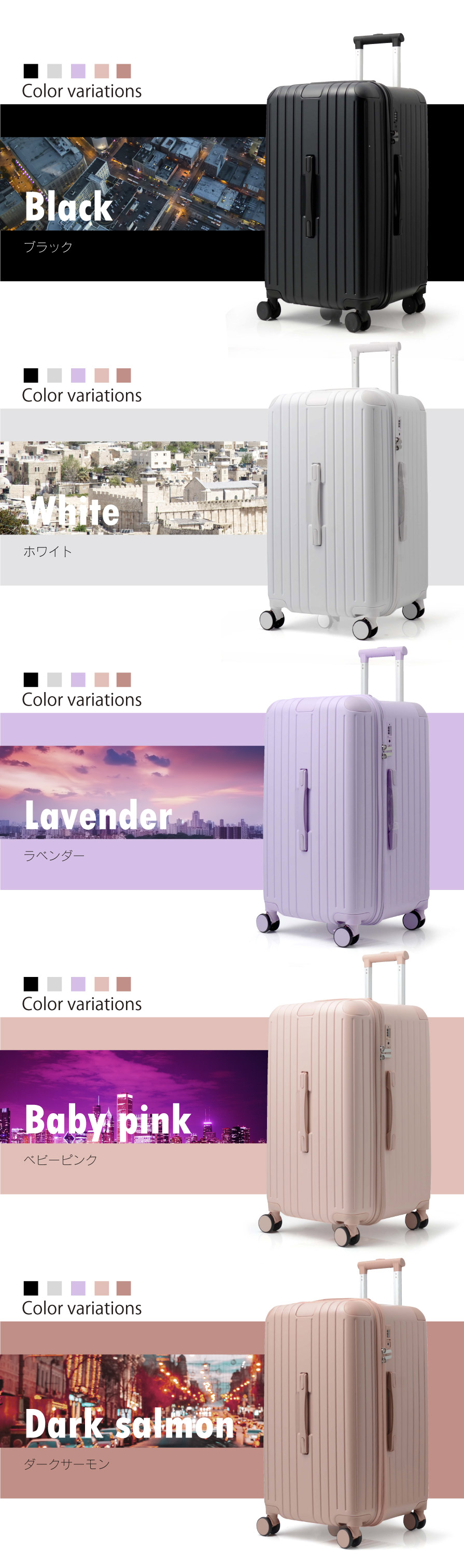 スーツケース キャリーバッグ L サイズ 中型 ストッパー 軽量 人気 ハードタイプ AP7610 キャリーケース 静音 Wキャスター 縦長 楽器ケース