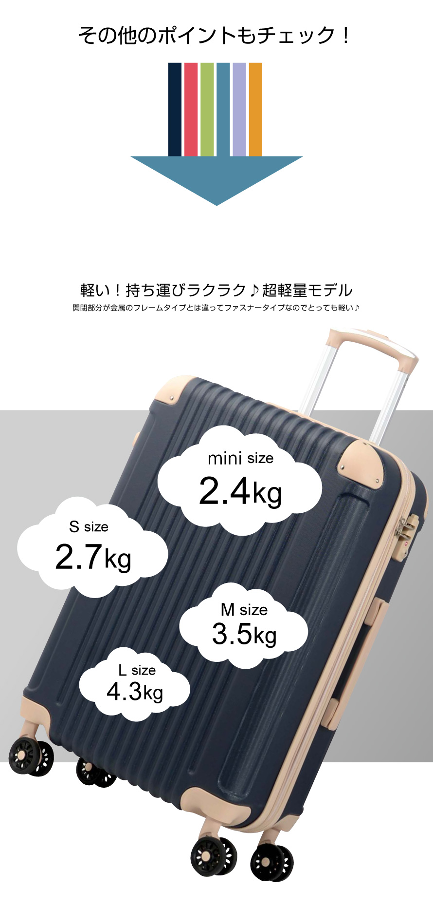 ※商品説明・モデル画像に使用しているキャリーケース画像は主にMサイズになります。