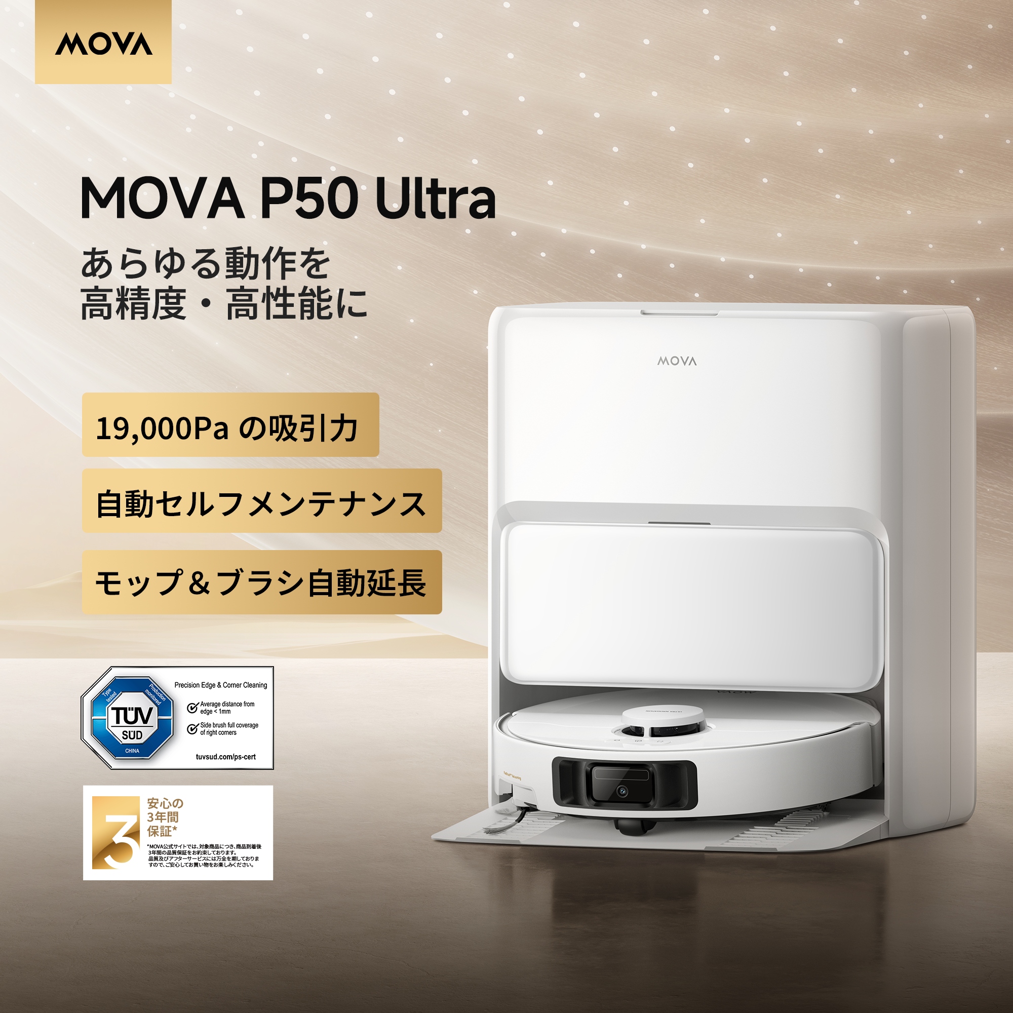 MOVA P50 Ultra ロボット掃除機 19,000Pa 自動ゴミ収集 自動洗浄・乾燥・給水 LDSレーザーナビゲーション 自動マッピング 落下防止 メーカー三年保証