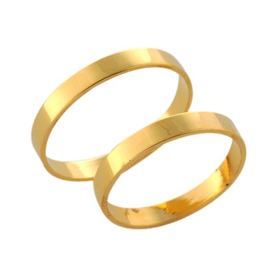 刻印無料! 送料無料!ペアネームリング ゴールドコ-ティング BRASS・フラット(平打)ペア2個 ポーチ付き(ポスト投函便)