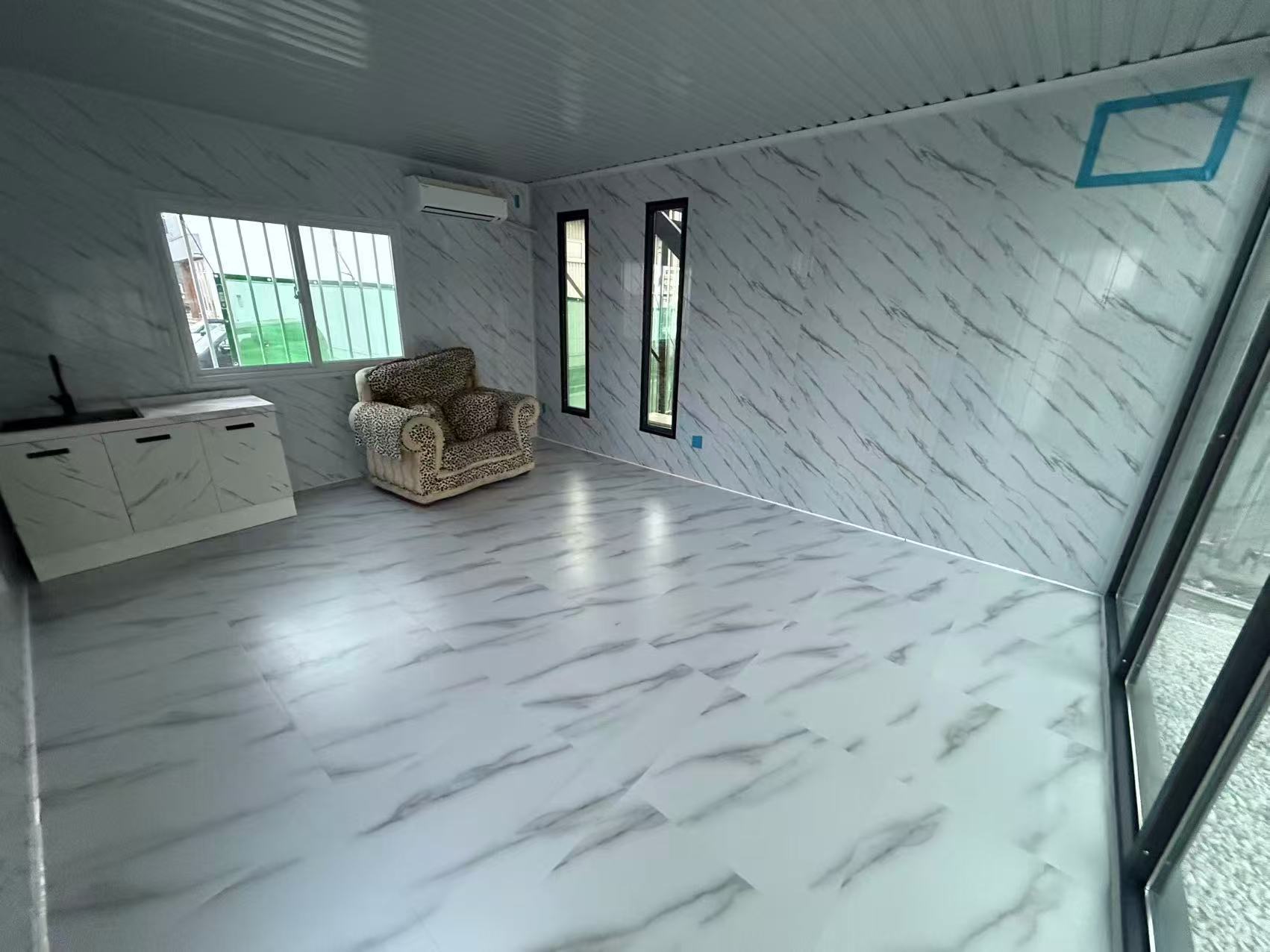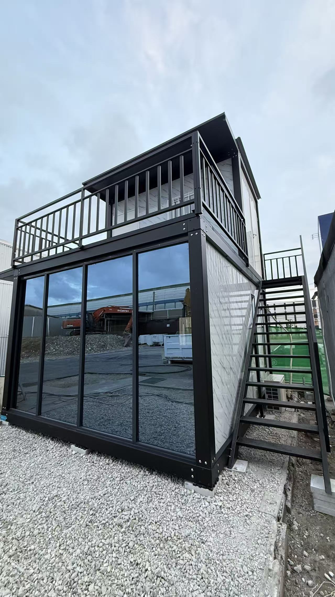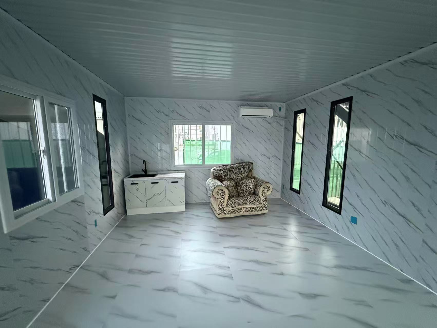 この簡易ハウスは、コンパクトは広さを誇り、物置や事務所、別宅、従業員宿舎などの用途に最適です。 (2.5*4*2.8m 、4*5*2.8m 1台ずつ連結)