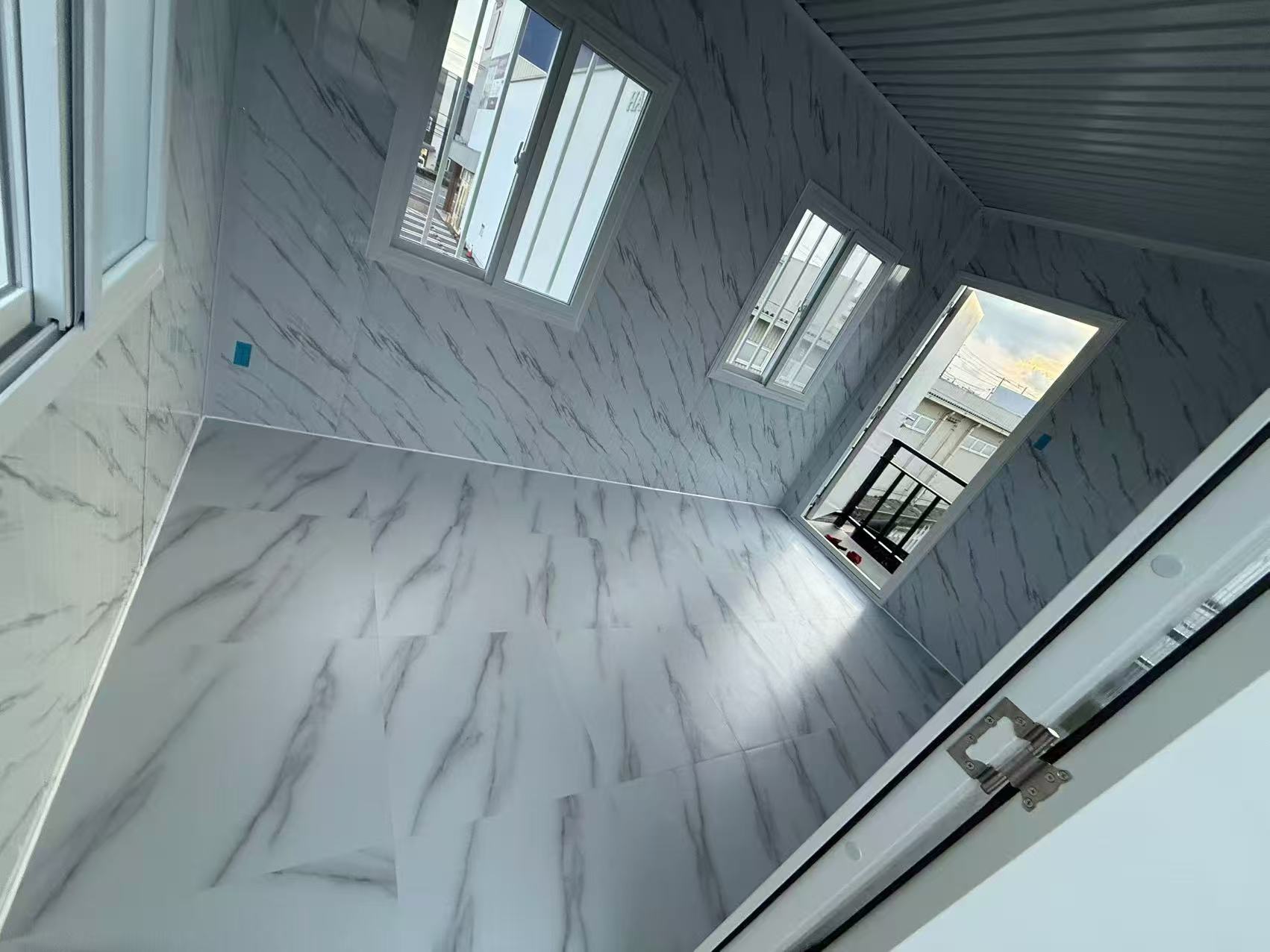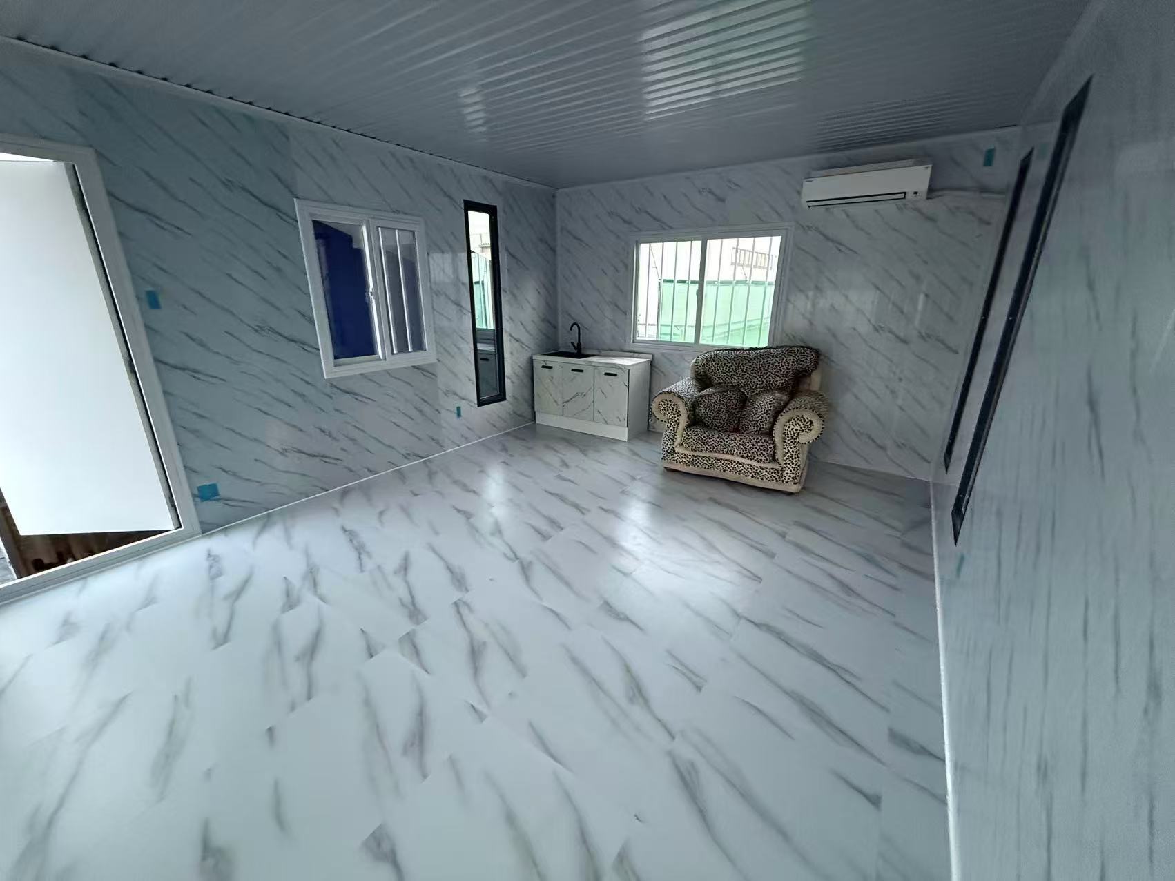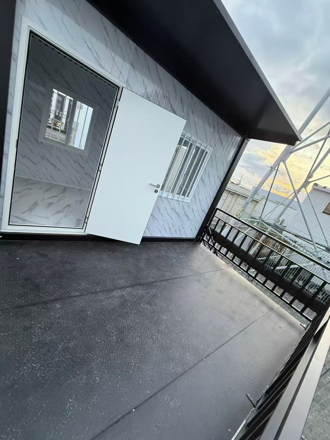 この簡易ハウスは、コンパクトは広さを誇り、物置や事務所、別宅、従業員宿舎などの用途に最適です。 (2.5*4*2.8m 、4*5*2.8m 1台ずつ連結)