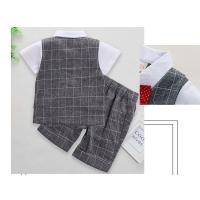 グレー ブルーにホワイトのチェック柄 半袖ベビースーツです。