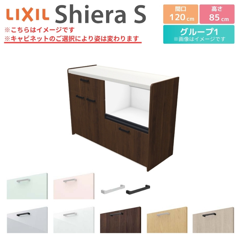 シエラS フロアキャビネット 間口120cm(60+60) カウンター高さ85cm 奥行45cm カップボード リクシル キッチン収納 食器棚 ロータイプ W1200mm グループ1