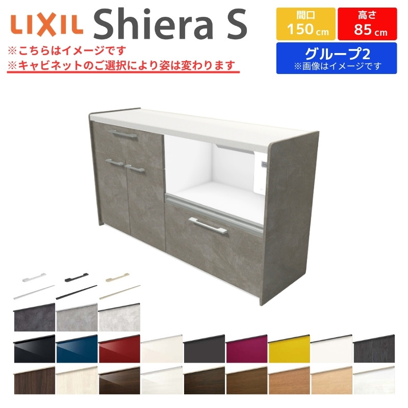 シエラS フロアキャビネット 間口150cm(75+75) カウンター高さ85cm 奥行45cm カップボード リクシル キッチン収納 食器棚 ロータイプ W1500mm グループ2