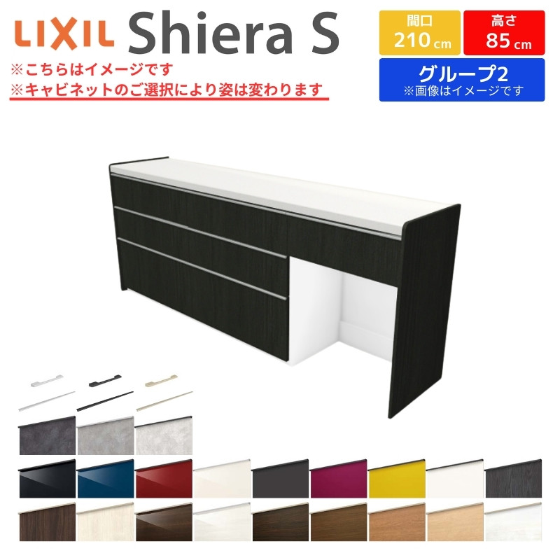 シエラS フロアキャビネット 間口210cm(75+75+60) カウンター高さ85cm 奥行45cm カップボード リクシル キッチン収納 食器棚 ロータイプ W2100mm グループ2