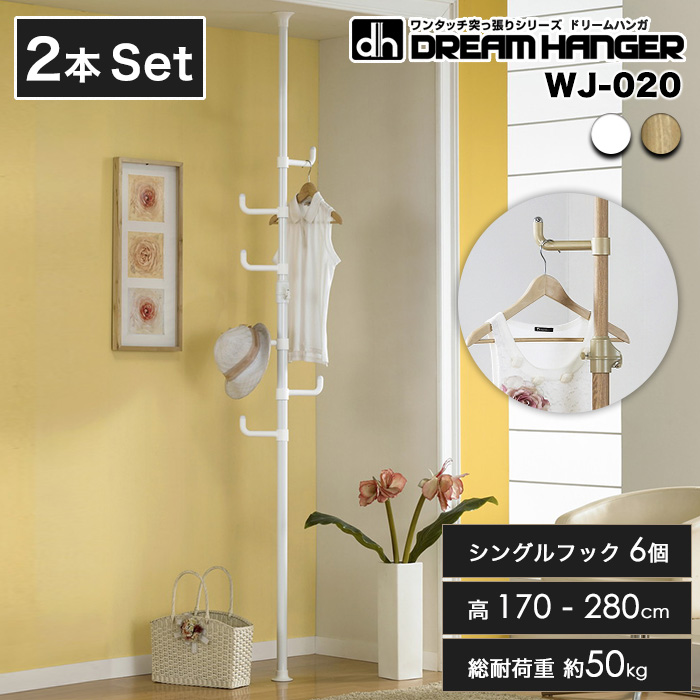 【2本set】【簡単】ワンタッチ式突っ張りポールハンガー 総耐荷重50kg 高170-280cm シングルフック6個 突っ張り棒 2m以上 ドリームハンガー WJ-020 正規品 爆買