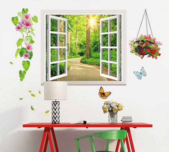| 癒しの3D窓 ウォールステッカー C201 森抜け道 窓+花 騙し絵 トリックアート はがせる 壁紙 シール 防水 DIY 壁 | 商品詳細 | 手軽にお部屋のイメージを変えられる、シールタイプのウォールステッカーです♪