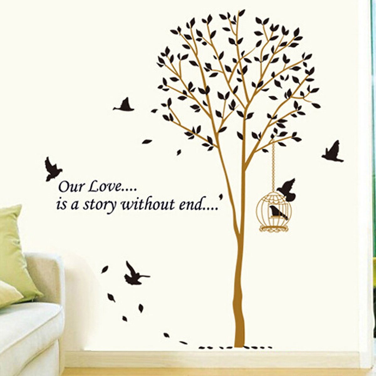 | ビッグツリー 小鳥と木 ウォールステッカー 葉っぱ 木 モノトーン シルエット シール C862 | 商品詳細 | 手軽にお部屋のイメージを変えられる、シールタイプのウォールステッカーです♪