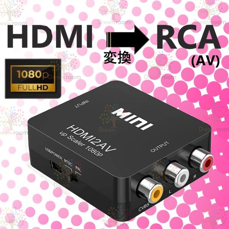 商品名;HD Video Converter ●入力端子:HDMI端子 ●出力端子:RCA端子 素材;ABS サイズ(外寸法);約6.0cm×5.5cm×2.0cm(突起部分は除く) 付属品;給電ケーブル(USB Type A-Type mini B 約50cm)、取扱説明書(※輸入品のため英語になります。) ※HDMIケーブル、RCAケーブルは付属しておりません。