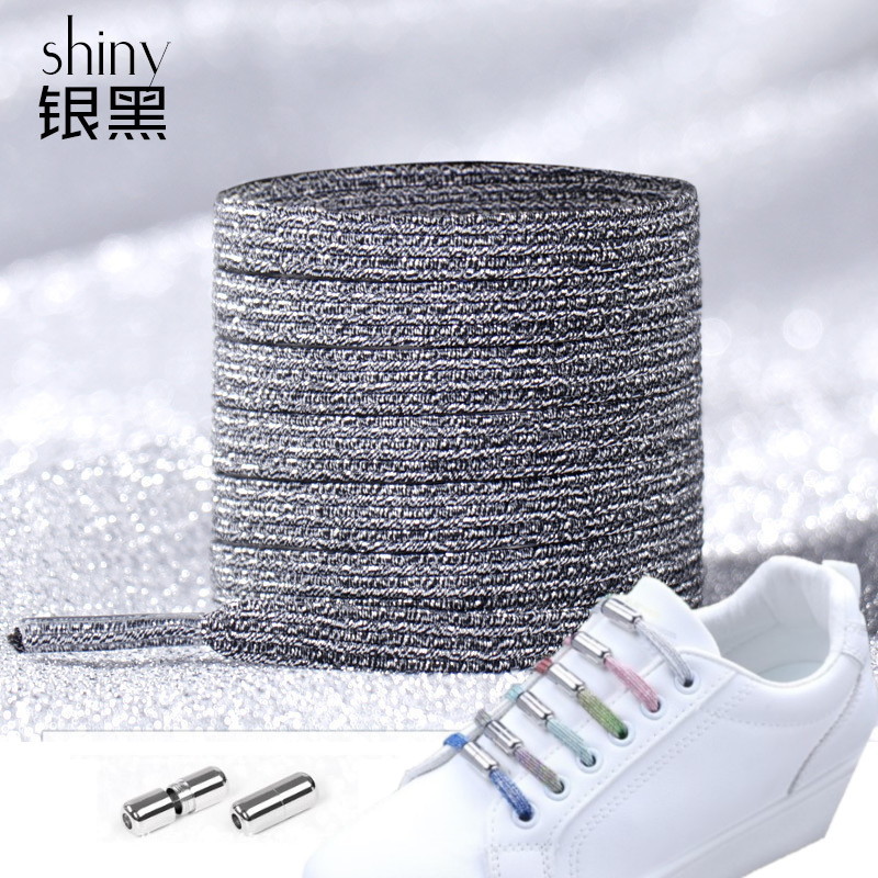 | シューレース シャイニー 靴ひも スピンタイプ 【ブラック&シルバー】 おしゃれ スニーカー ラメ 紐 ゴム紐 伸びる 結ばない くつひも 伸縮| 商品詳細 | 【結ばない靴紐】 伸縮性の超高ポリエステル糸製で、高弾性抜群!磨耗に強いのが特徴です。 結ばなくていいので、履くときのイライラを解消します♪