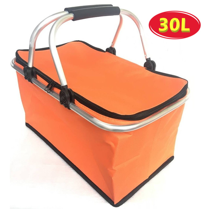 | 保冷・保温 機能付き 30L 折りたたみ式 エコバッグ【オレンジ】大容量 バスケット 買い物かご 断熱バッグ屋外 ピクニック 商品詳細 | ●大容量!保冷・保温レジャーバッグ ピクニックバスケットです。 ●600Dオックスフォード布を使用。 ●持ちやすいグリップ、軽量アルミフレーム、コンパクトに折りたたみ持ち運べます。 ●食品のまとめ買い、レジャー、アウトドア、運動会、海水浴などオールシーズン使えます。 ●内側はアルミ蒸着シートで保冷・保温効果抜群!液体にも強く、お手入れもカンタンです。 ●EVA素材のグリップで、長時間持っても手が痛くなりにくいです。 ●ダブルジッパーでどこからでも開閉自由 サイズ:(約)W48 D28 H24cm(持ち手含まず)