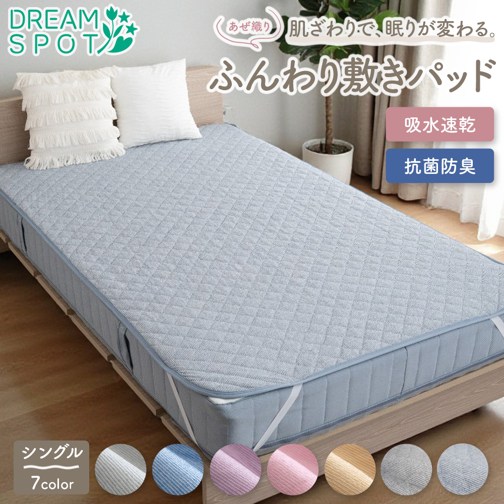 敷きパッド パイル地 吸水速乾 シングル 抗菌防臭 べたつかない 春 夏 秋 洗える タオル地 清潔 ベッドパッド 4か所 ゴム ベッドパット シーツ 100cm×205cm