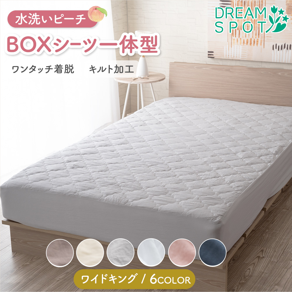 ボックスシーツ 一体型 ワイドキング ベッドパッド パッド一体型 ボックスシーツ カバー 敷きパッド ベッドシーツ ベッドカバー 洗濯可 マチ35cm 200×200cm