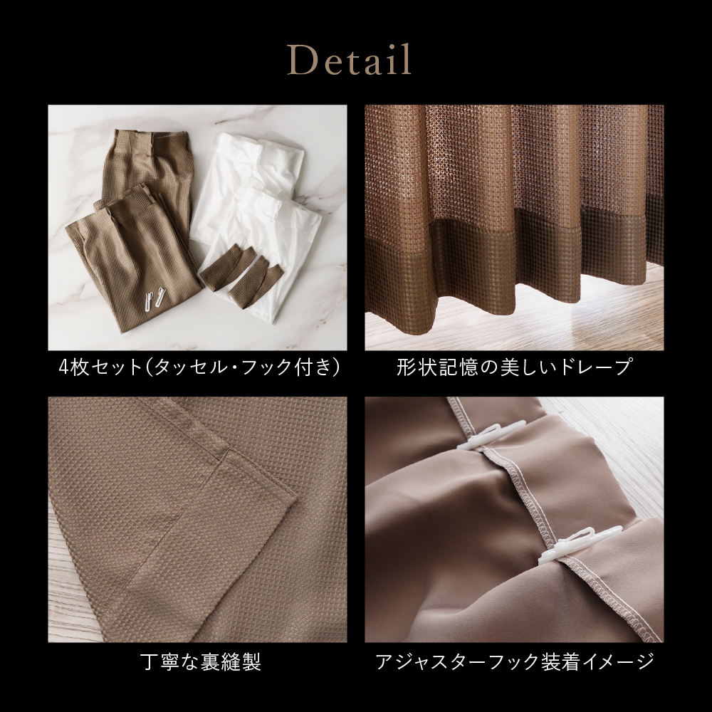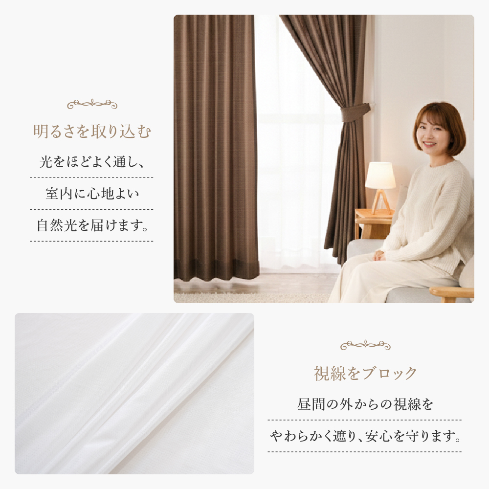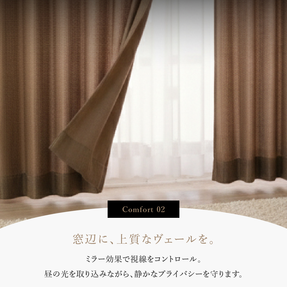夜間、室内で照明をつけた状態では、外から中が見えるようになります。夜間はドレープカーテン(厚地)を閉じてご使用ください。