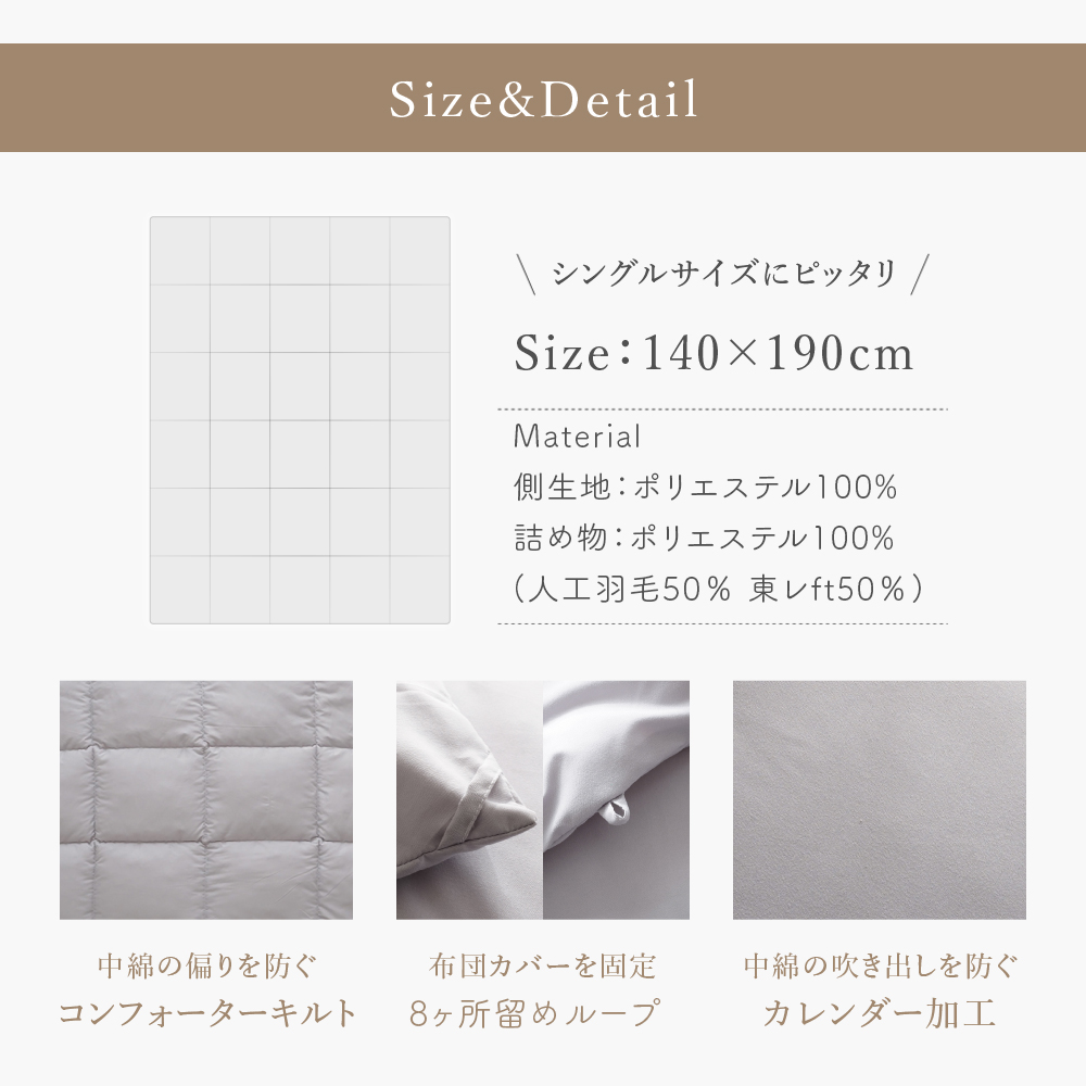 肌掛け布団 シングル 洗える 人工羽毛 東レft アレルギー対策 防ダニ 掛け布団 春夏 キルトケット ウォッシャブル 抗菌 防臭 軽い ホコリが出にくい 140×190cm