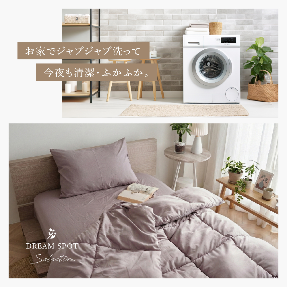 家庭用の洗濯機で丸洗いでき、いつも清潔に保てます。