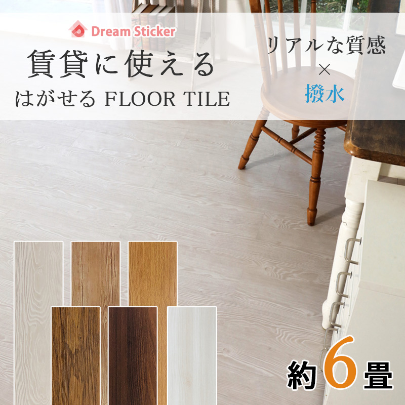 ノリ無し フロアタイル 置くだけ 木目調 賃貸 6畳 フロアシート フローリングシート 床 リメイクシート タイル 床材 防水 ペット 傷防止 白 床暖房対応 抗菌