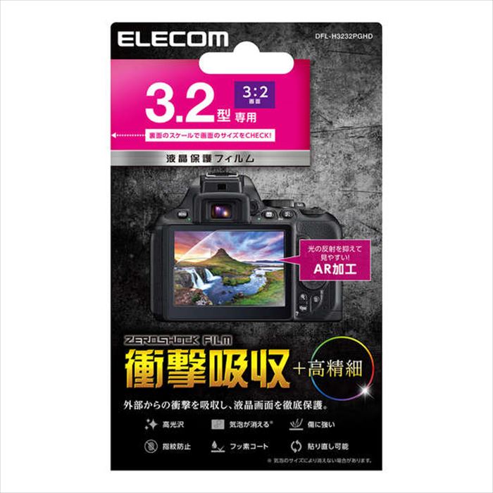 ■商品名:3:2画面 3.2型 液晶デジタルカメラ用 液晶保護フィルム 衝撃吸収 高精細 ARコート 高光沢 指紋防止 エアーレス