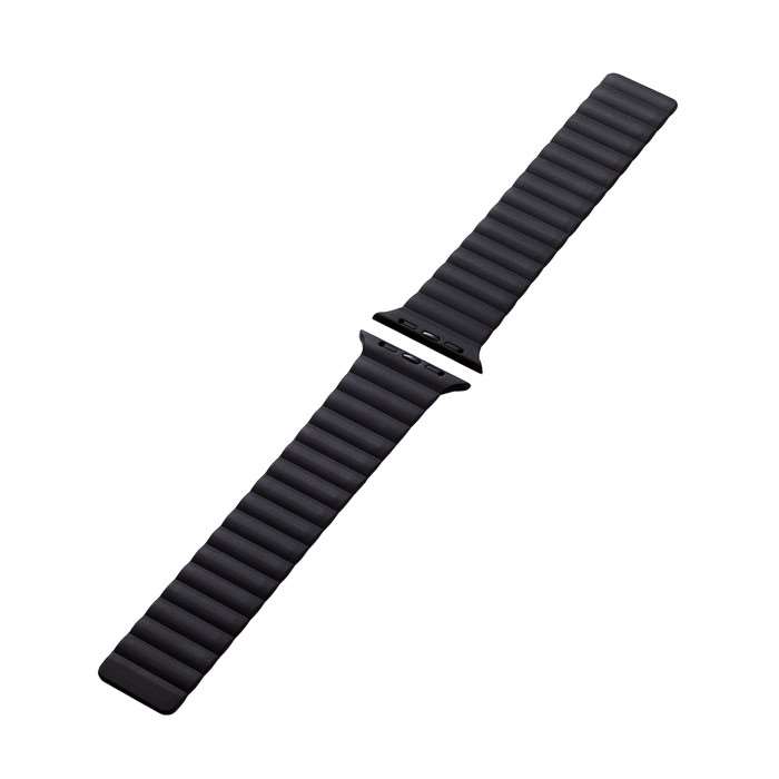 ■バンドに埋め込まれたマグネットで、バックルを使わず簡単に装着できるApple Watch用マグネットバンドです。 ■細かな長さ調整も簡単にできて手首にしなやかにフィットします。 ■柔らかく装着感の良いシリコン製です。 ■汗や水に強く、耐衝撃性に優れたシリコン素材を採用しています。 ■ラグ部分はバンドから続く一体形状で成形されており、Apple Watchとバンドをしっかり接続します。 ■バンドをApple Watchに装着したままで液晶画面の確認、本体の操作、各種ボタン操作、純正の磁気充電ケーブルへの設置が可能です。 ■自社環境認定基準を1つ以上満たし、『THINK ECOLOGY』マークを表示した製品です。 ■環境保全に取り組み、製品の包装容器におけるプラスチック重量を、社内基準製品より20%以上削減した製品です。