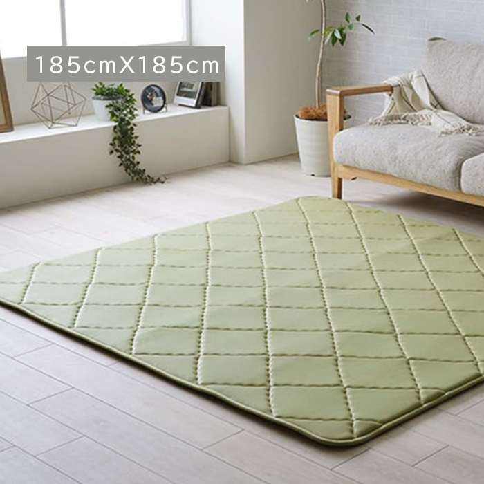 ラグ 滑りにくい 防音 ボリューム 厚い 洗える 手洗い 乾きやすい もっちり 無地 グリーン 約185×185cm 約2畳 床暖房 ホットカーペット対応 こたつ敷布団