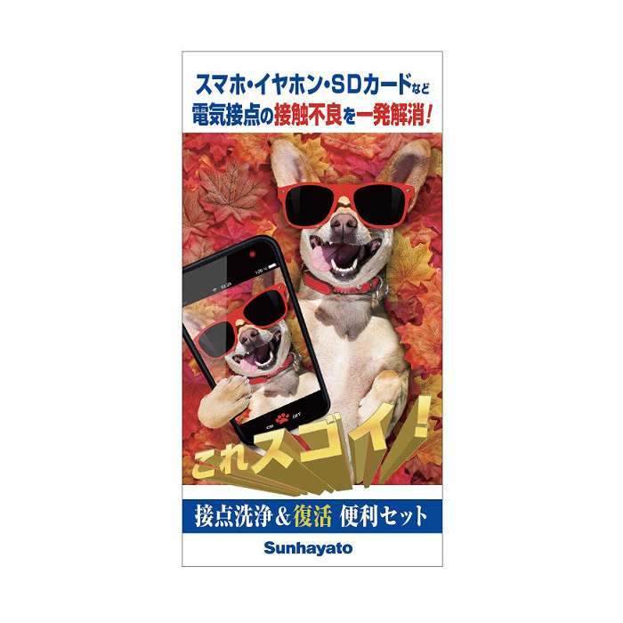 サンハヤトは日本で初めて「接点復活剤」を開発、発売した会社です。その商品「ポリコール」は、テレビのロータリーチャンネルのメンテナンス用として、当時の国内の全ての大手電気メーカーに採用され、「接点復活剤」という名称もポピュラーとなりました。その後、絶えず性能向上や環境対応化を進め、今日に至っております。本製品は、スマートフォンやタブレットの充電コネクタ、イヤホンジャック、USBケーブルなど私たちの生活で身近に起きる“電気接点でのトラブル”を【簡単な2ステップ】で解消できる製品です。以下のような場面で大活躍します。スマートフォン・タブレットなどの充電コネクタ部分の接触不良を解消。SDカード、USBケーブル、レトロゲームなどの接触不良を解消。イヤホン、ヘッドフォンのジャック部分のメンテナンス、ノイズ(ガリ)除去、および音質向上効果。その他、オーディオ機器の各種ケーブル、ジャック類のメンテナンスに使用することでクリアな音質を再現します。パッケージデザイン:犬(4931442488117/CSS-102A)。