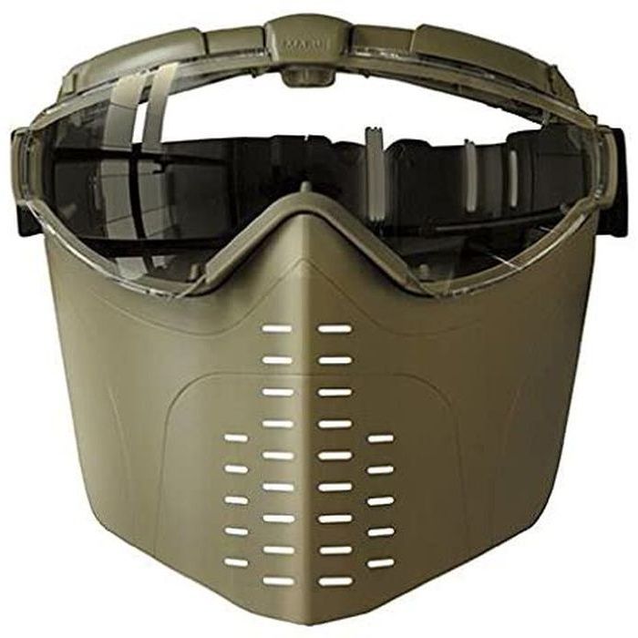 電動ファンとフェイスガードが付いたエアソフトガン用ゴーグル。■ファン付きゴーグル:スイッチをおすだけでファンの強さを2段階に切り替え可能。アンチフォグ (防曇)を施したレンズ内を常に換気するので、暑い時期でもゴーグルが曇りません。 ■紫外線をカット:グラス部分はUV400コーティングレンズ仕様。夏場の強い紫外線もしっかりカットします。 フェイスガード標準装備:ゴーグルに取り付けられたフェイスガードが顔全体をカバー。ストックにほお付けしても狙いやすい形状です。 ■広角ワイドレンズ採用:眼鏡をかけたまま装着できる広角タイプのゴーグルで、広い視野を確保できます。 ■カラーは砂漠地帯での迷彩効果を高めるコヨーテブラウン。