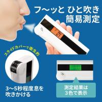 ● フ〜ッとひと吹き簡易測定。● 測定結果は3色(グリーン、オレンジ、赤)で表示。・ グリーン…0.100mg/L未満(アラーム音なし)・ オレンジ…0.100〜0.225mg/L(ゆっくりしたアラーム音「ピッ、ピッ」)・ 赤…0.250mg/L以上(速いアラーム音「ピピピピ」)● 前回測定結果を記憶するメモリー機能付き。● 1500回までのカウント機能付き。● 吹込み部は回転式スイッチ兼用で衛生的。● 単4形乾電池2本使用(別売)。 ※本製品は飲酒運転の可否を判定する機器ではありません。