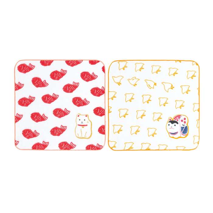 おいわい お祝い 祝福 祝い事 幸せ ハンカチ ハンカチタオル ハンカチーフ タオルチーフ ミニタオル 2枚セット 2枚組 2Pセット 2P さくら サクラ 桜 ふくろう フクロウ 梟 犬張り子 ちどり チドリ 千鳥 たい タイ 鯛 まねき猫 招き猫 日本製 お祝い ギフト プレゼント