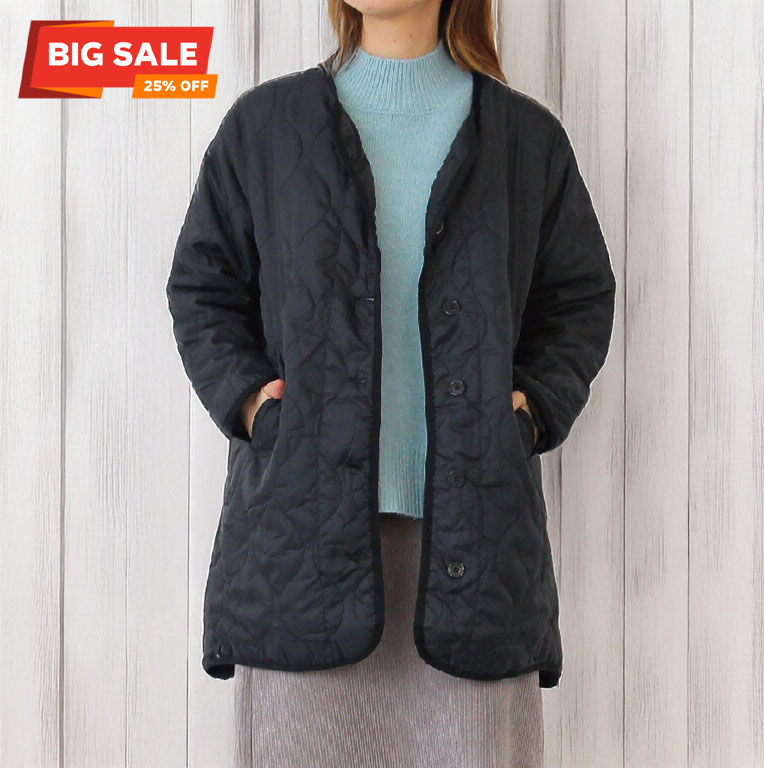 | ディテール | ふんわり軽くて、暖かいキルトジャケットシリーズ。 腰やヒップまでしっかり包み込むロング丈で冷え対策も◎ 前後差のある丈感でバランスよく着られるデザイン。 保温性もありつつ、着膨れしにくい スッキリとしたシルエットで、 何にでも合わせやすいおすすめアウターです♪ すべりが良いので、中にニットなどを着ていても スッと腕が通ります。 とても着やすいので、毎日ついつい手が伸びてしまします♪ |