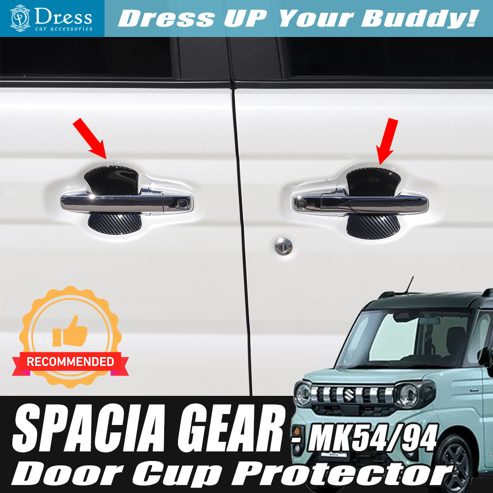 スズキ スペーシア ギア MK94S MK54S イミテーション カーボン ドア ハンドル カバー プロテクター 皿
