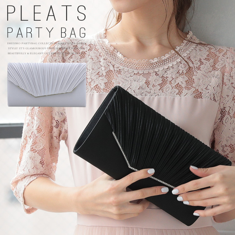 お持ちのパーティードレス、パンツドレス、パーティーワンピース、フォーマルドレスに合わせやすいパーティーバッグ