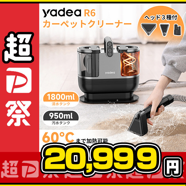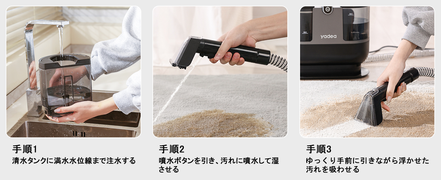 ※【技術革新!定温加熱式カーペットクリーナー】Yadea加熱式カーペットクリーナー登場!汚れた箇所に水を吹きかけ汚れを浮かせ、汚れと水を一緒に吸引する!湿った液体の汚れだけでなく乾いた汚れや、洗剤を使用した後から水分ごと吸い取ることができるクリーナー!