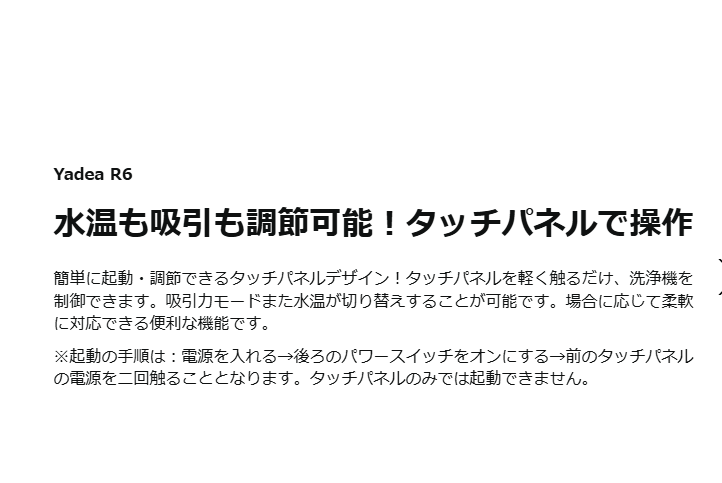 ※【多様な付属品をご提供!より便利に使える】LEDタッチパネルで操作できる!11000Pa標準モードと15000Pa強力モードがあり、加熱温度は40℃と60℃が設定可能、洗浄対象によって簡単に選べる。適用範囲は広くて色々布製品に対応するブラシヘッド、面積の広い布製品をより楽に洗浄できる大型ブラシヘッドまたホース洗浄用のセルフクリーニングヘッドを提供し、色々なシーンに対応!