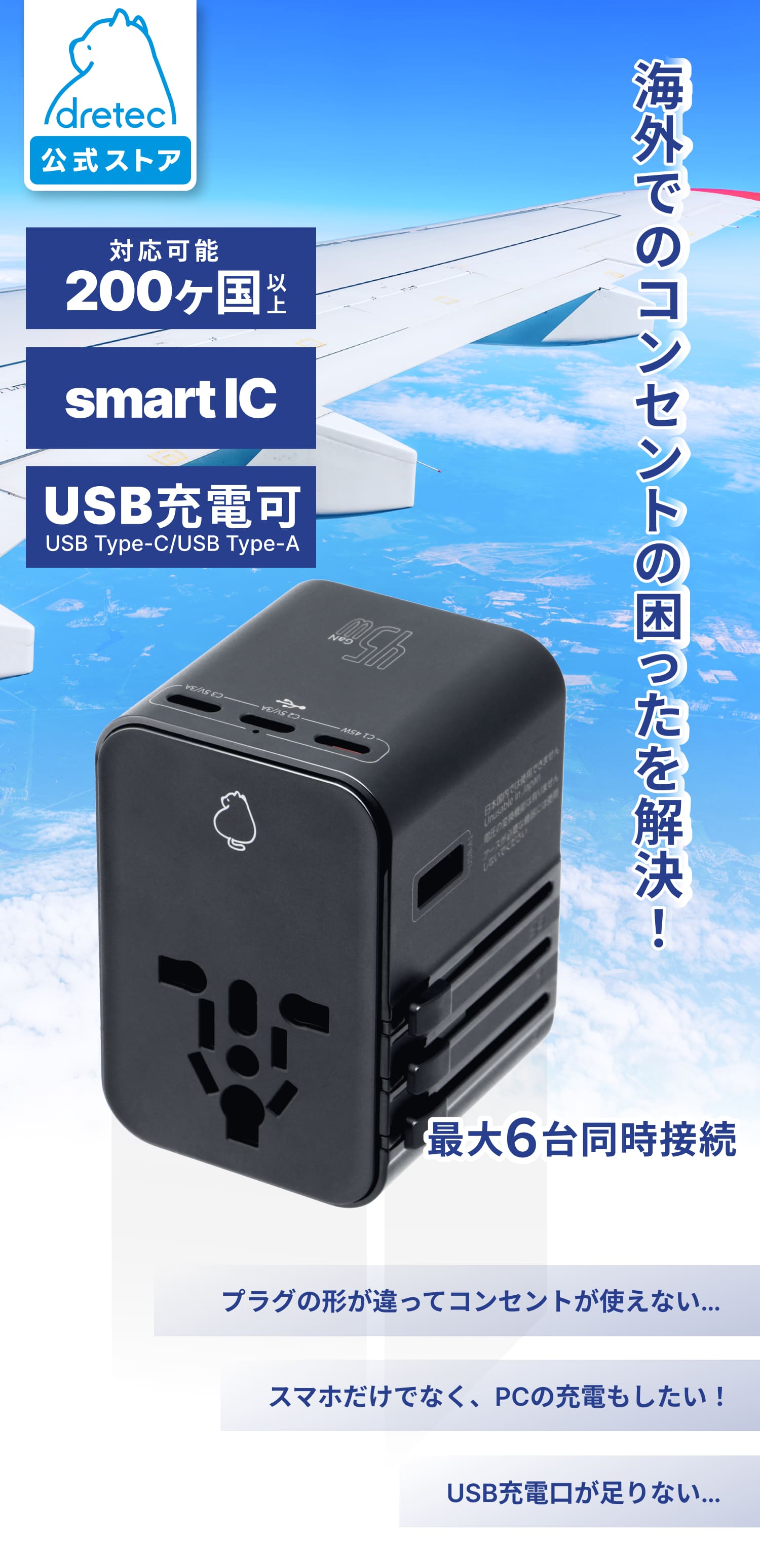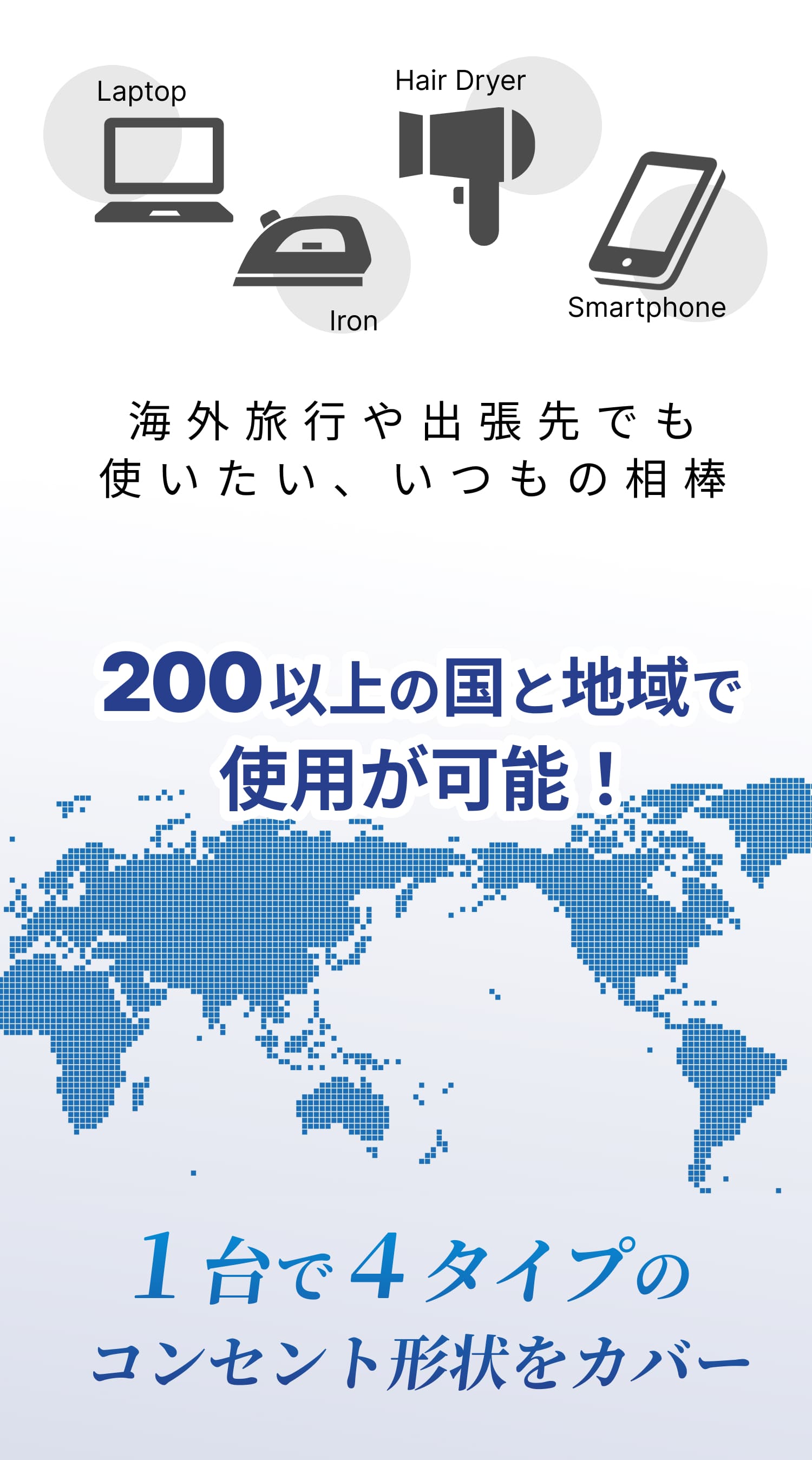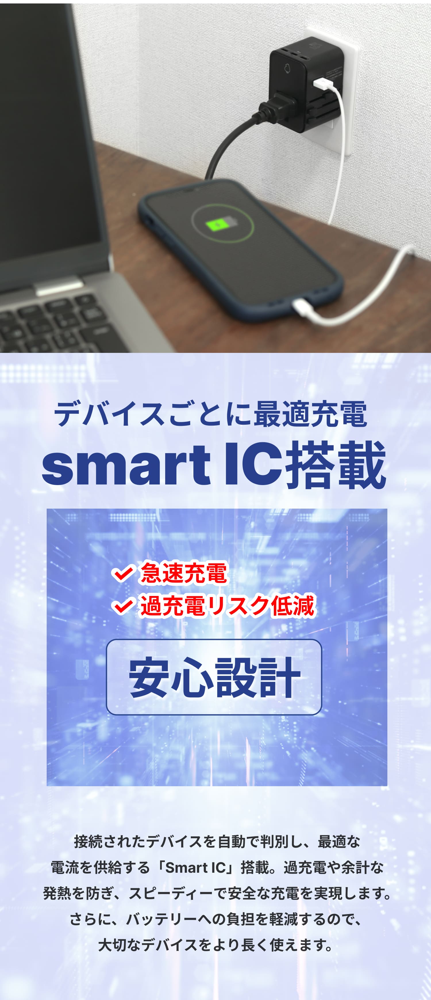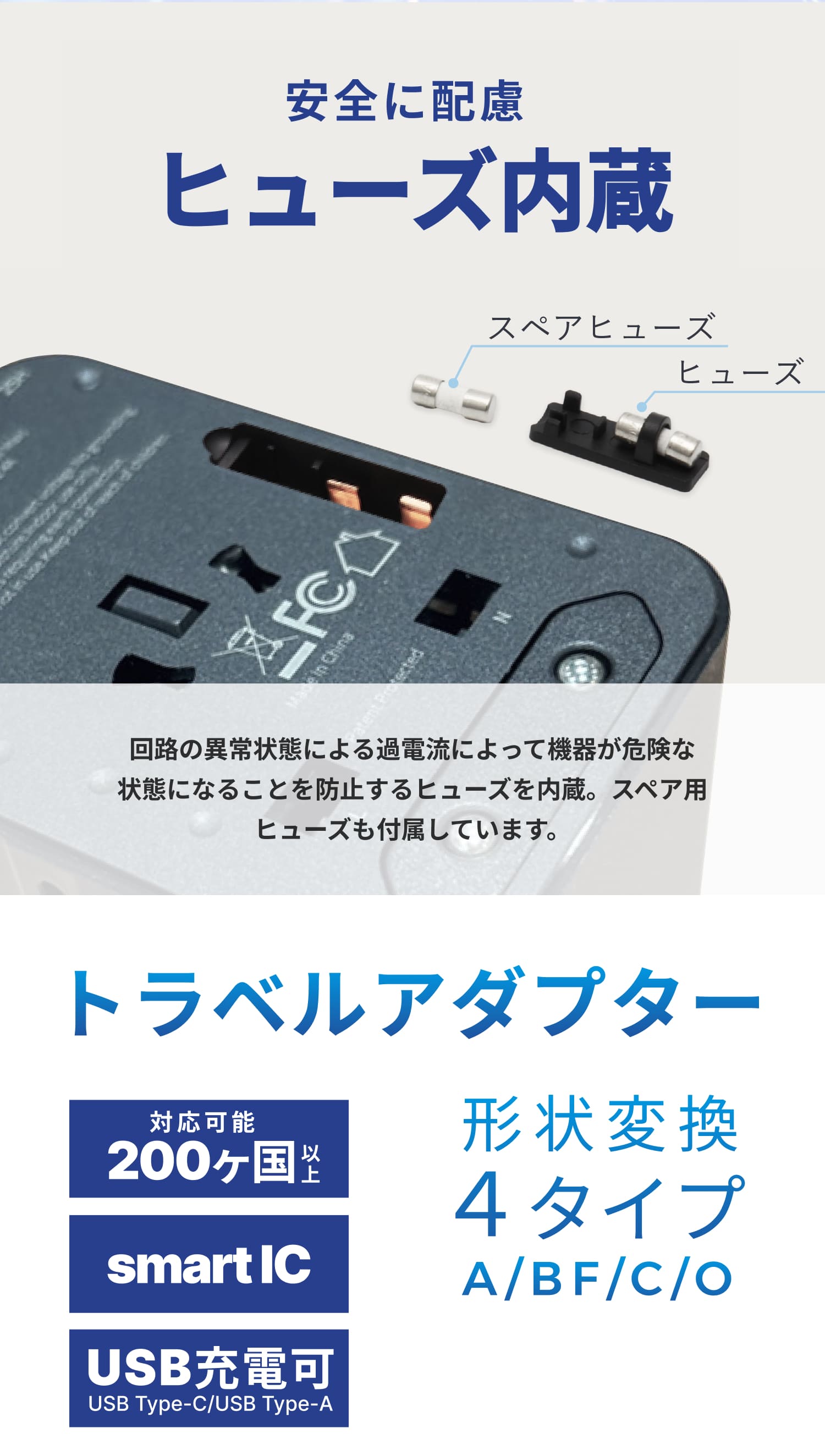 | 入力 100〜240V 50/60Hz 10A(ACコンセント)+1A(USB充電器) |