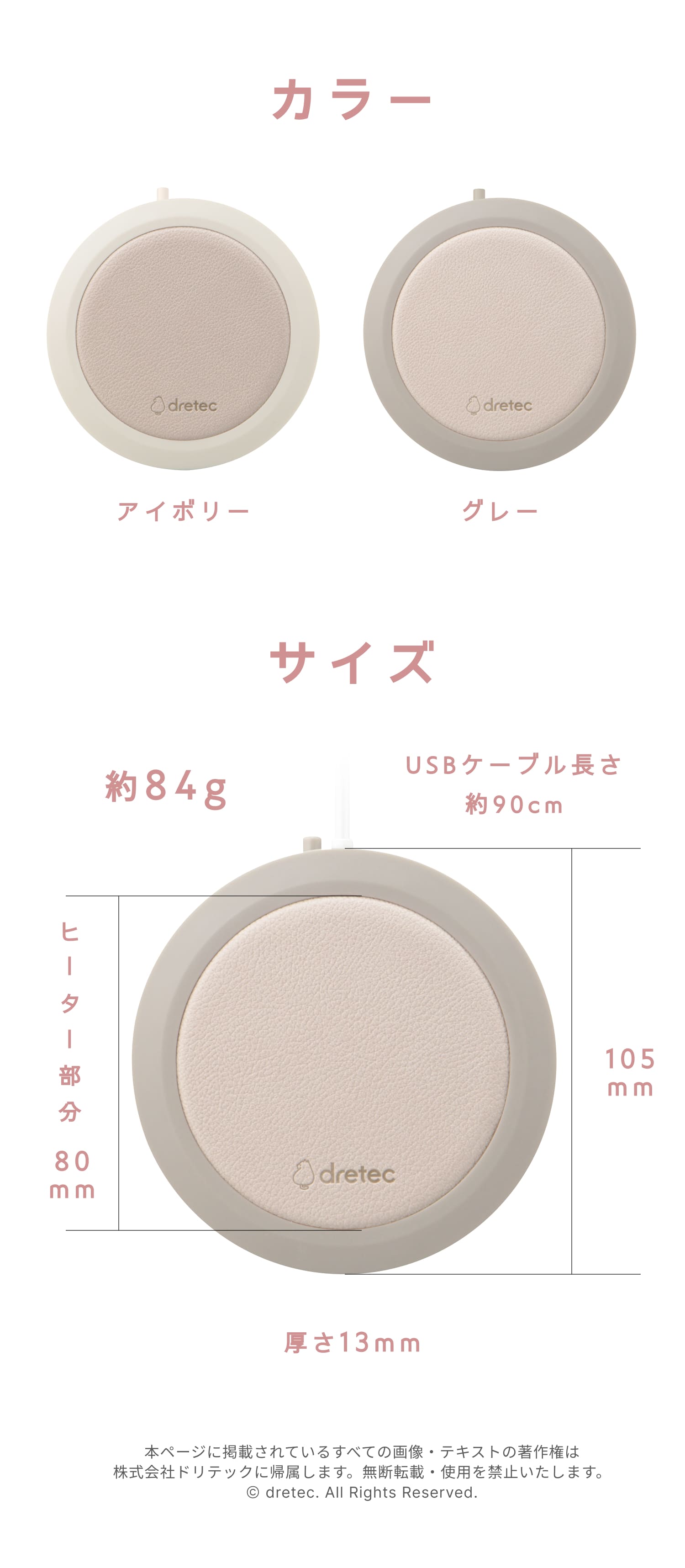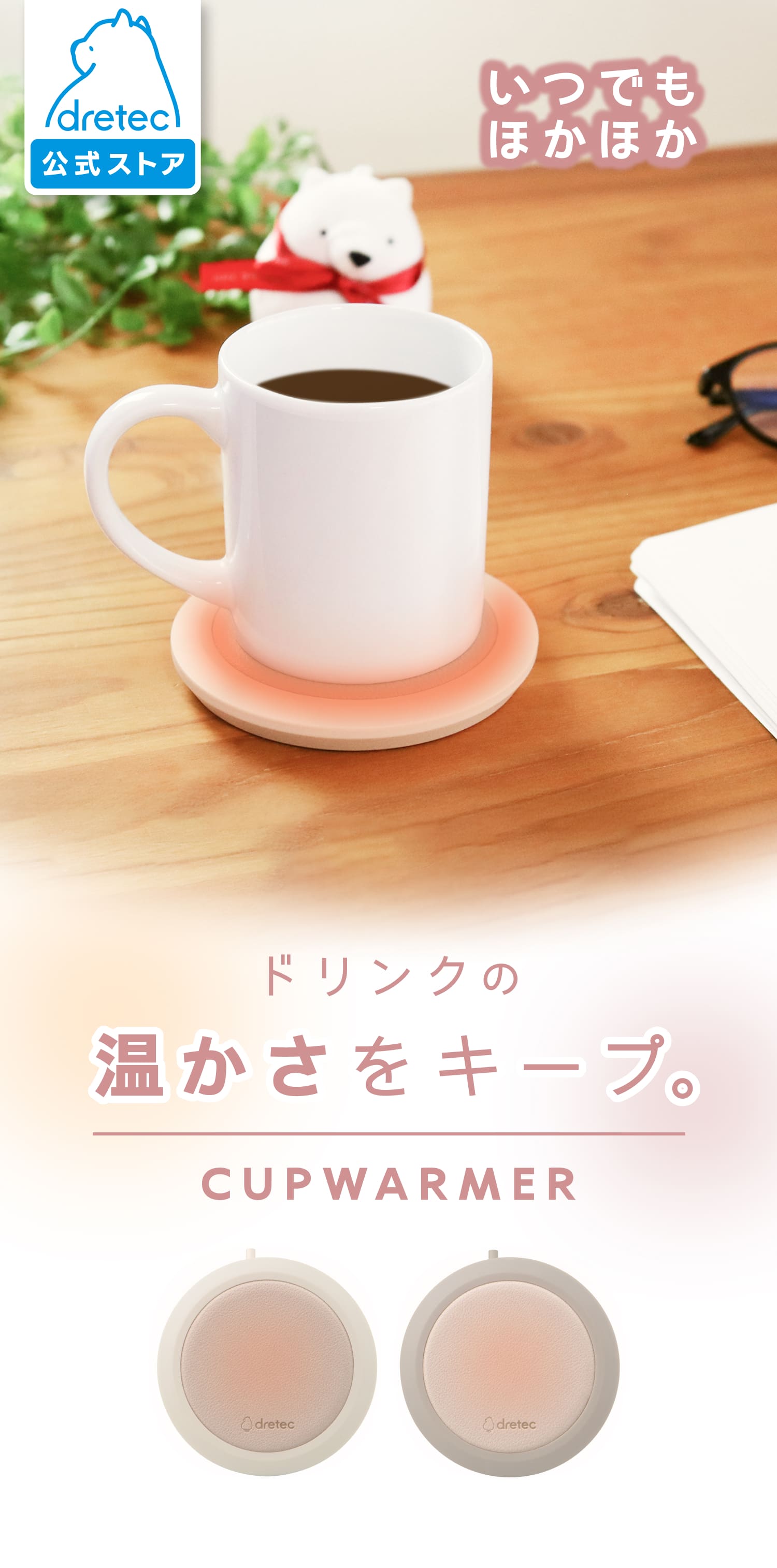 [検索キーワード] ドリテック カップウォーマー マグカップ ペットボトル対応 USB給電 コーヒー 保温機 保温プレート 温度キープ ホット飲料 オートパワーオフ 機能付き コンパクト デスク用 テレワーク 在宅勤務 勉強用 便利アイテム 冬の必需品 プレゼント ギフト 電気カップウォーマー コーヒー保温 器具 おしゃれ シンプル設計 安全設計 2.4A対応 USB Type-A ドリンクウォーマー ほっとドリンク 温かい飲み物 かわいい おしゃれ シンプル コンパクト グレー グレージュ ベージュ アイボリー ホワイト