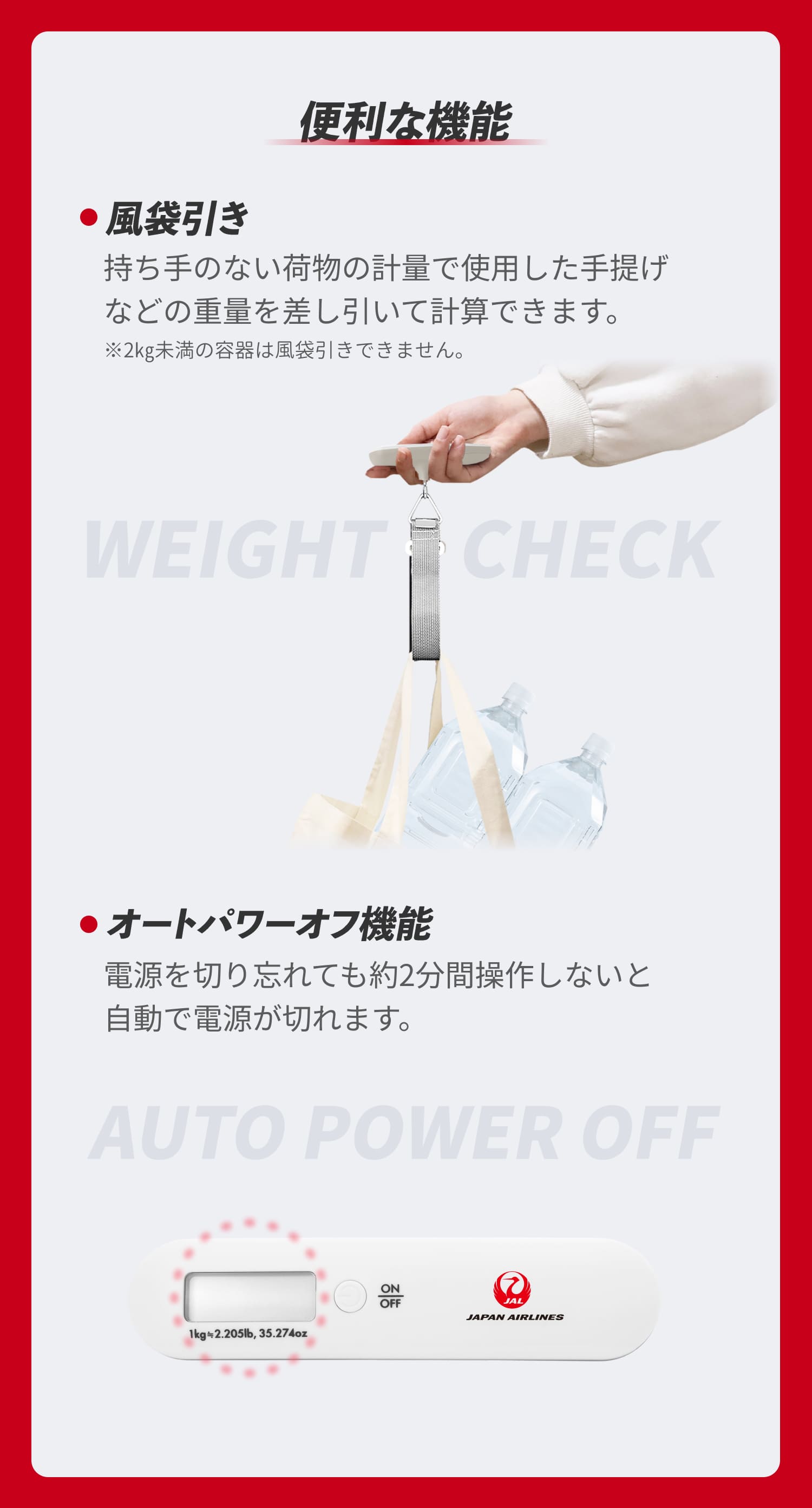 ドリテック 公式 ラゲッジスケール JALオリジナル JAL公認 飛行機 空港 荷物 はかり 風袋引袋 重量オーバー スーツケース 機内持ち込み 旅行 ホワイト LS-114