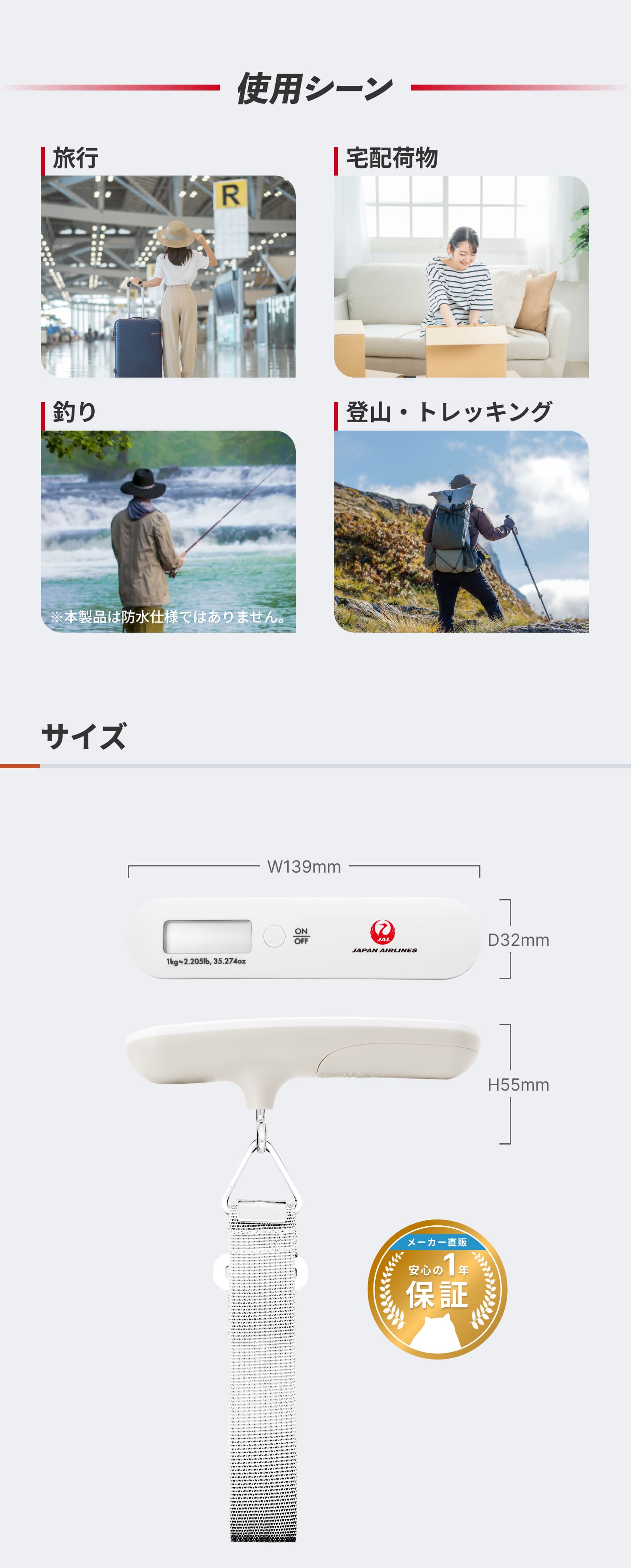 [検索キーワード] ドリテック ラゲッジスケール 荷物 はかり JAL JALオリジナル 日本航空 LS-114JX 荷物スケール 吊り下げ スーツケース 機内持ち込み トランク キャリーケース 重さ 測り 測る 旅行 トラベル 携帯 スーツケース 重量計 デジタルスケール 50kg 50g 計量器 ハンディスケール 宅配 計量 重さチェック オートパワーオフ 電池残量表示 Lo 表示 デジタル 計測器 手荷物計量 ラゲッジチェッカー 単位 測り スケール 旅行準備 出張 デジタル 預け荷物 荷物 風袋引袋 宅配荷物 釣り 登山 トレッキング 重量計 計り 量り 三角スケール 旅行グッズ 便利グッズ トラベルグッズ スリム コンパクト プレゼント ギフト お祝い 誕生日 就職祝い 卒業旅行 母の日 父の日 敬老の日 ホワイト マット dertec