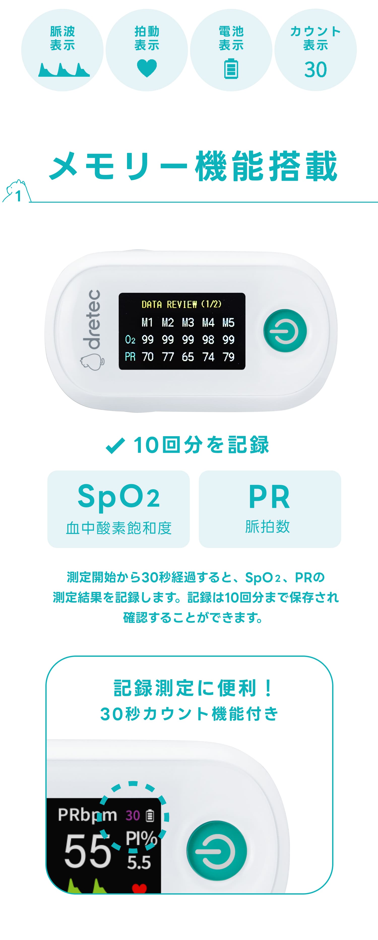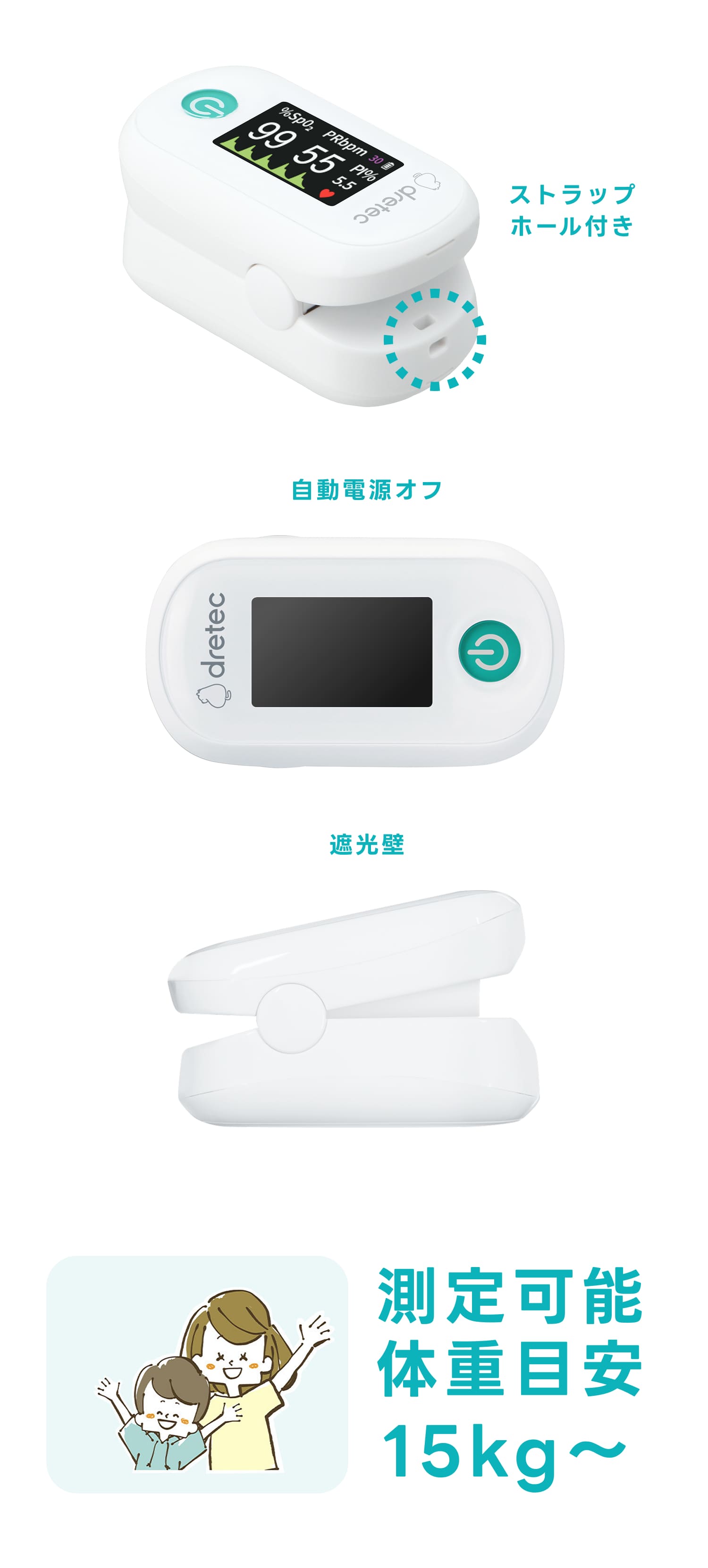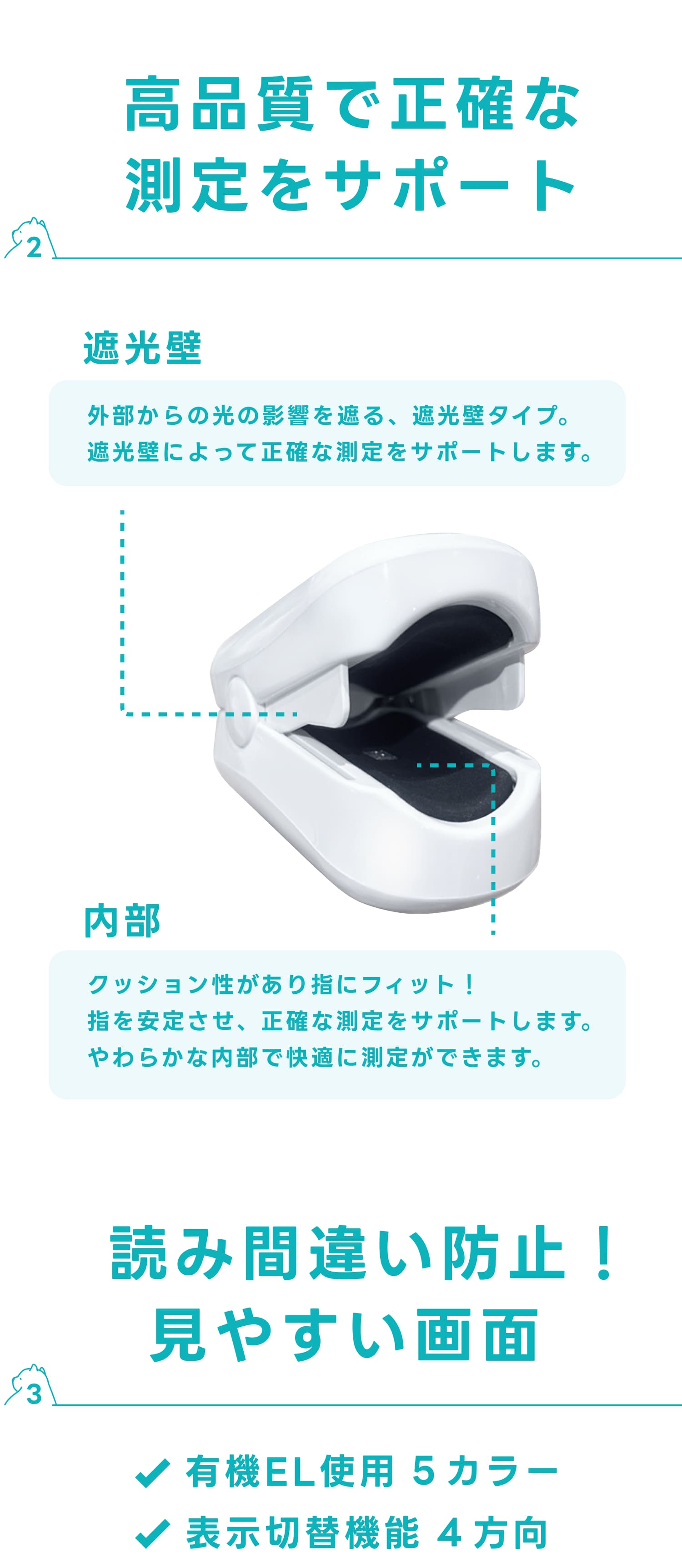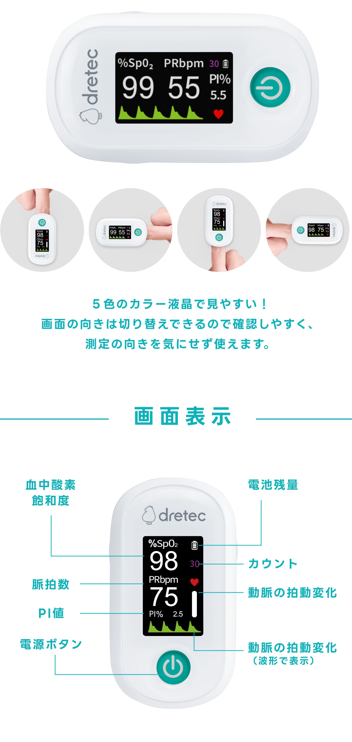 | 測定範囲 SpO/70%〜99%、脈拍/30bpm〜250bpm、PI/0.3%〜20.0% |
